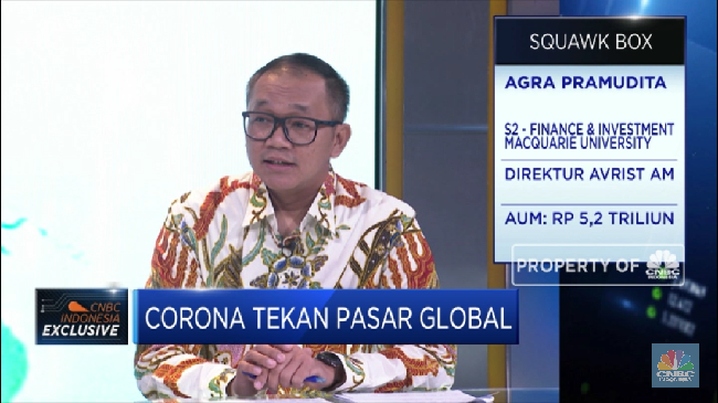 Jakarta, CNBC Indonesia- Sell off yang terjadi di pasar obligasi maupun pasar saham khususnya kawasan Asia termasuk Indonesia disebut Direktur Avrist Asset Management, Agra Pramudita masih sebagai efek dari penyebaran virus Corona. Keluarnya investor dari pasar juga menekan kinerja manajemen investasi, namun diharapkan recovery kondisi penyebaran wabah ini bisa selesai dalam 3-4 bulan sehingga pasar bisa kembali rebound, mengingat saat ini pasar saham sudah sangat murah sehingga jadi waktu yang pas untuk masuk kepasar.
